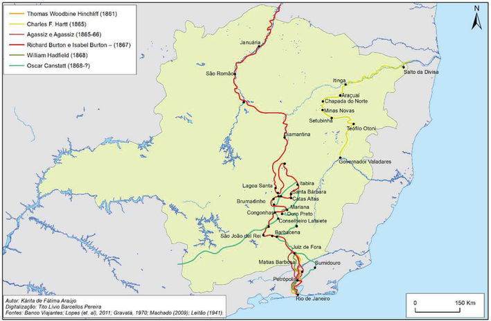 Nas paredes, mapas exibem itinerários historicamente reconhecidos que levam o visitante por uma viagem aos séculos passados. Esses mapas contêm o Caminho Novo da Estrada Real; as rotas das principais expedições científicas percorridas pelos viajantes estrangeiros no século XIX; o trajeto da precursora Estrada de Rodagem União e Indústria e o traçado dos ramais das pioneiras linhas férreas D. Pedro II e Leopoldina.